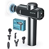 Pistola de masaje eléctrica portátil, aparato de masaje muscular ultra silencioso, pistola de masaje con 30 velocidades, 6 cabezales de masaje y pantalla LCD para el cuerpo, espalda(Negro)